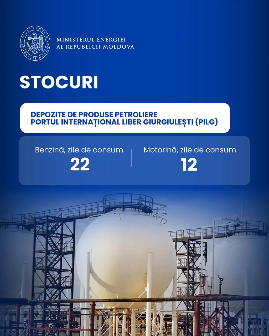 În prezent, sunt disponibile volume de benzină care asigură 22 de zile de consum, pentru motorină au fost depozitate volume echivalente cu 12 zile de consum.