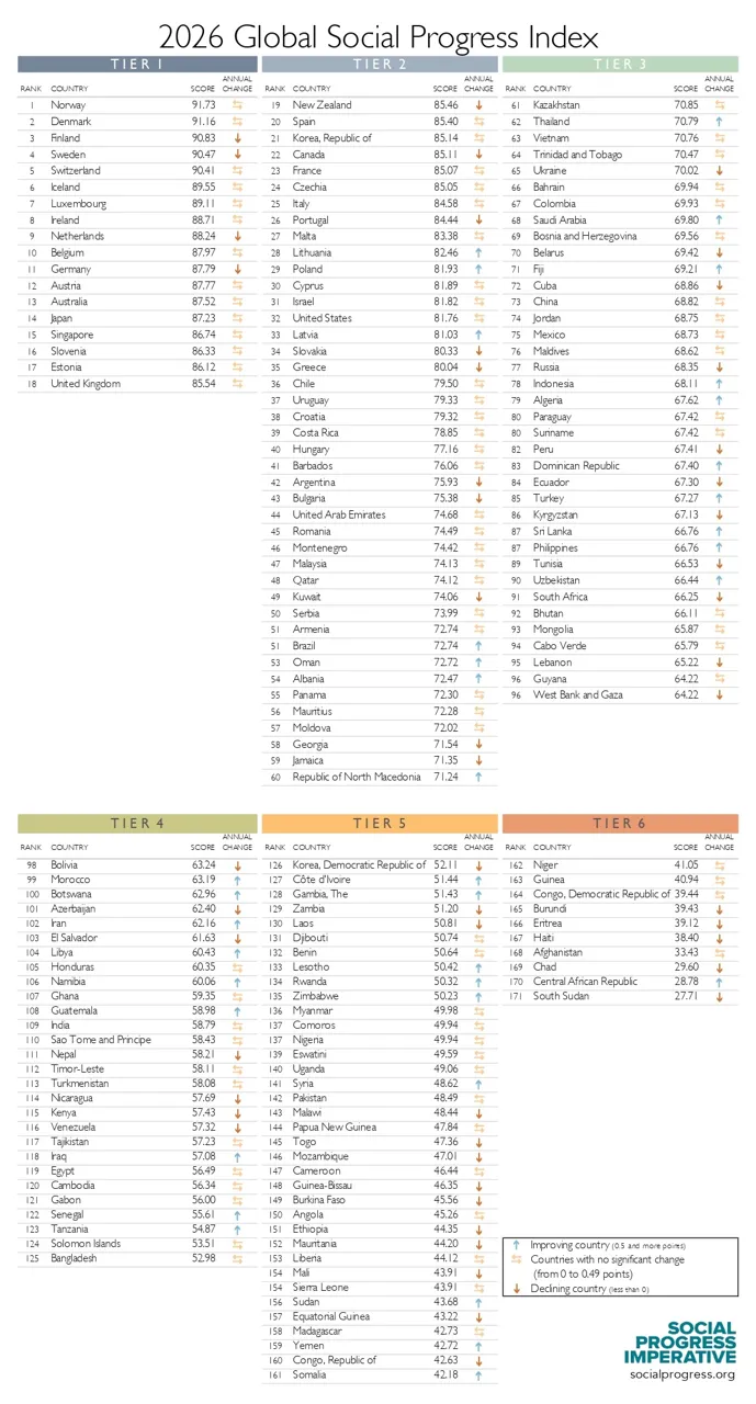 Cel de urmă raport arată că stagnarea progresului social este un fenomen global, care afectează aproape fiecare regiune a lumii, iar circa o treime dintre țările analizate au înregistrat scăderi în ultimul an.