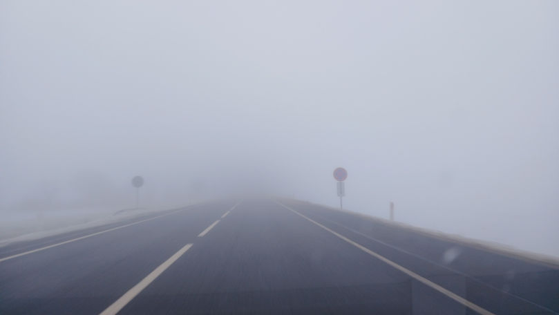 Condiții dificile pe drumuri: Ceață densă și carosabil umed în mai multe zone