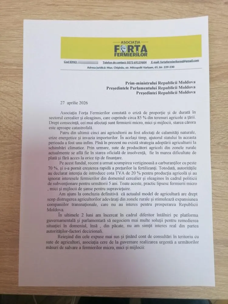 Asociația Forța Fermierilor avertizează despre o criză de proporție și de durată în sectorul cerealier și oleaginos, care cuprinde circa 85% din terenuri agricole a țării. Potrivit agricultorilor, cei mai afectați sunt fermierii micro, mici și mijlocii, starea cărora este aproape catastrofală.