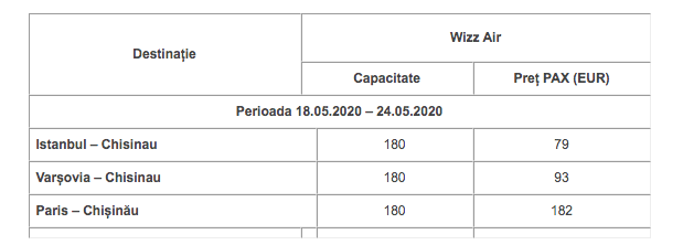 Totodată, compania aeriană "Wizz Air" în parteneriat cu operatorul turistic My Travel va efectua cursele charter pe următoarele destinații: Istanbul, Varșovia, Paris.