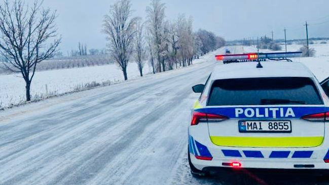 Șoferii sunt îndemnați să evite deplasările neesențiale, să manifeste prudență sporită la volan și să respecte indicațiile polițiștilor aflați în teren.