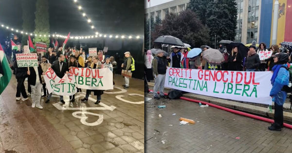 Colaj: Știri.mdZeci de persoane au ieșit în stradă, fluturând steaguri ale Palestinei și afișând pancarte cu mesaje precum „Opriți genocidul” și „Palestina liberă”, transmite Știri.md cu referire la unimedia.info.