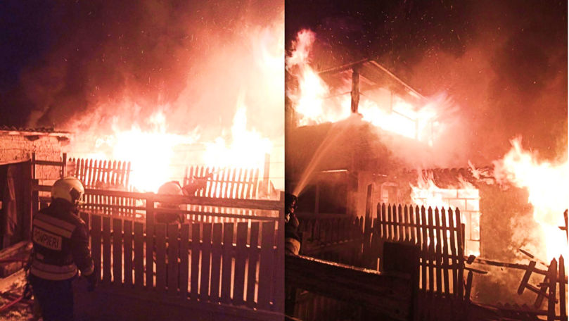 Două incendii în aceeași casă la 3 ore distanță. Un bătrân, internat în stare gravă