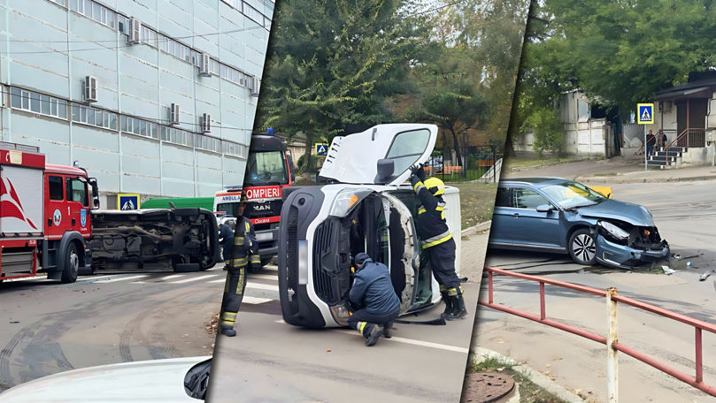 Accident la Ciocana: O mașină s-a răsturnat. Alta, grav avariată