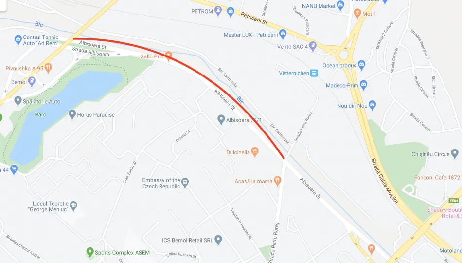 Primăria municipiului Chișinău informează că duminică, 19 octombrie 2025, între orele 06:00 și 17:00, va fi suspendat traficul rutier pe str. Albișoara, pe tronsonul cuprins între str. Mihai Viteazul (de la pod) și str. Petru Rareș.