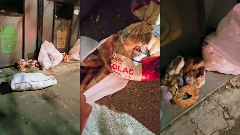 Saci plini cu colaci au ajuns să fie aruncați la gunoi. Imaginile au fost surprinse de un internaut și publicate pe rețelele sociale.