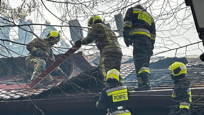 La moment, pompierii efectuează lucrări de spălare și demontare a construcției afectate de incendiu.