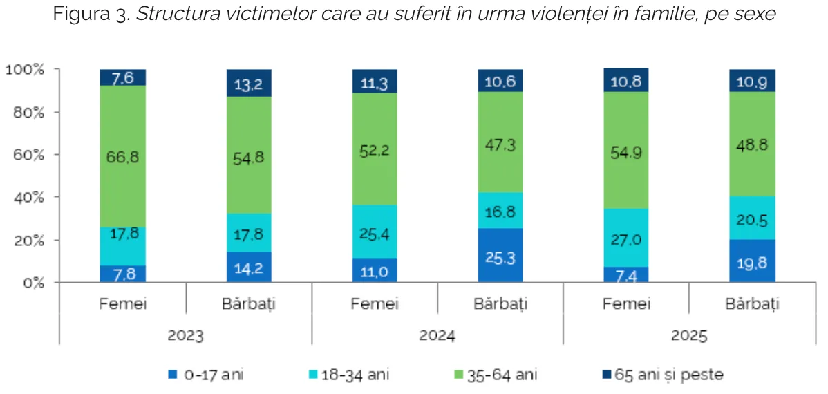 În ceea ce privește minorii, ponderea băieților victime ale violenței în familie a fost de 2,7 ori mai mare decât cea a fetelor – 19,8% față de 7,4%.