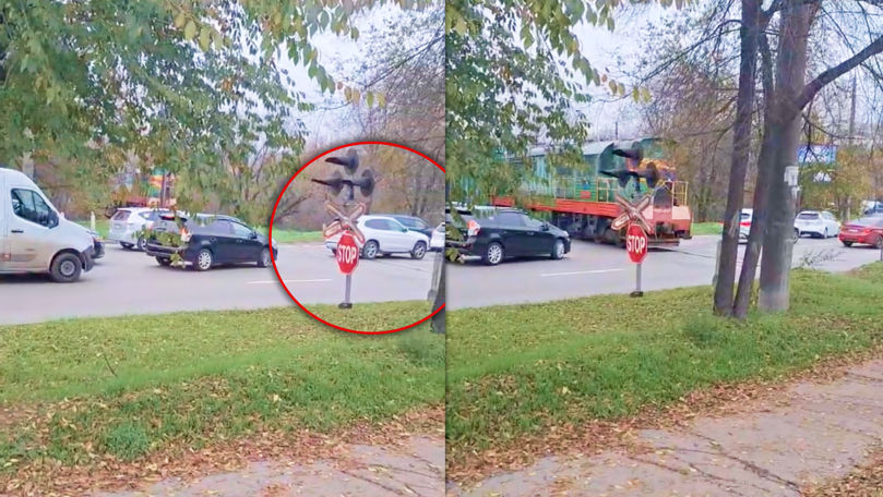 La un pas de tragedie: Șoferi trec pe roșu în fața trenului pe o stradă din Chișinău
