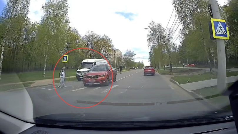 O tragedie a fost evitată la limită, după ce un automobil a fost la un pas să lovească un minor în timp ce acesta traversa strada regulamentar.