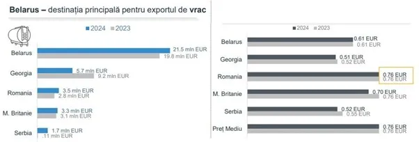 Având în vedere prețul mediu relativ scăzut al vinului în vrac exportat către Belarus (circa 0,61 euro per litru), rezultă că volumele livrate sunt estimate la peste 35 de milioane de litri anual.