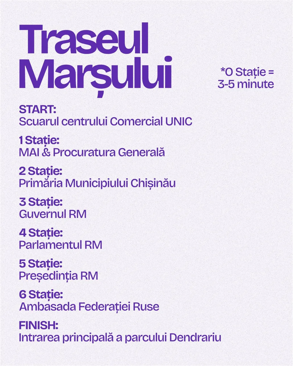 Imagine simbolPotrivit organizatorilor, marșul va începe la ora 12:00, din fața magazinului UNIC, iar participanții vor parcurge bulevardul Ștefan cel Mare și Sfânt până la Parcul Dendrariu. Evenimentul este programat să dureze aproximativ două ore, transmite Știri.md cu referire la ziar.md.