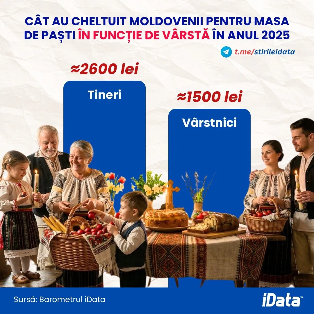 Diferențe semnificative se observă și în funcție de vârstă. Tinerii au cheltuit cel mai mult, în medie aproximativ 2.600 de lei, în timp ce vârstnicii au alocat în jur de 1.500 de lei pentru masa de Paște.
