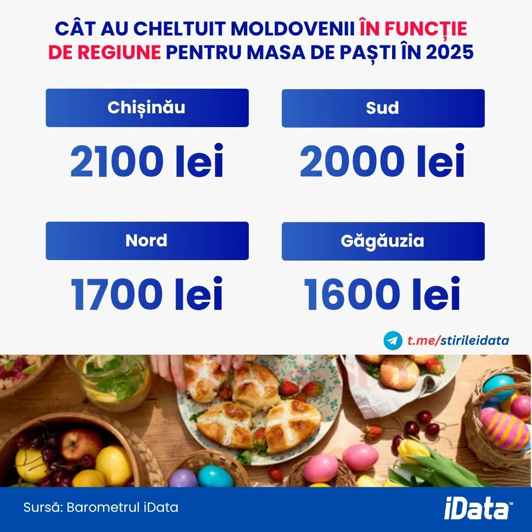 Datele arată diferențe și în funcție de regiune. Cei mai mari consumatori sunt locuitorii din Chișinău, unde cheltuielile medii au ajuns la circa 2.100 de lei. În sudul țării, suma medie este de aproximativ 2.000 de lei, în nord – 1.700 de lei, iar în UTA Găgăuzia – circa 1.600 de lei.