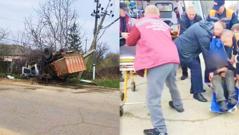 Mașină de gunoi răsturnată la Dubăsari. Șoferul, internat în stare gravă