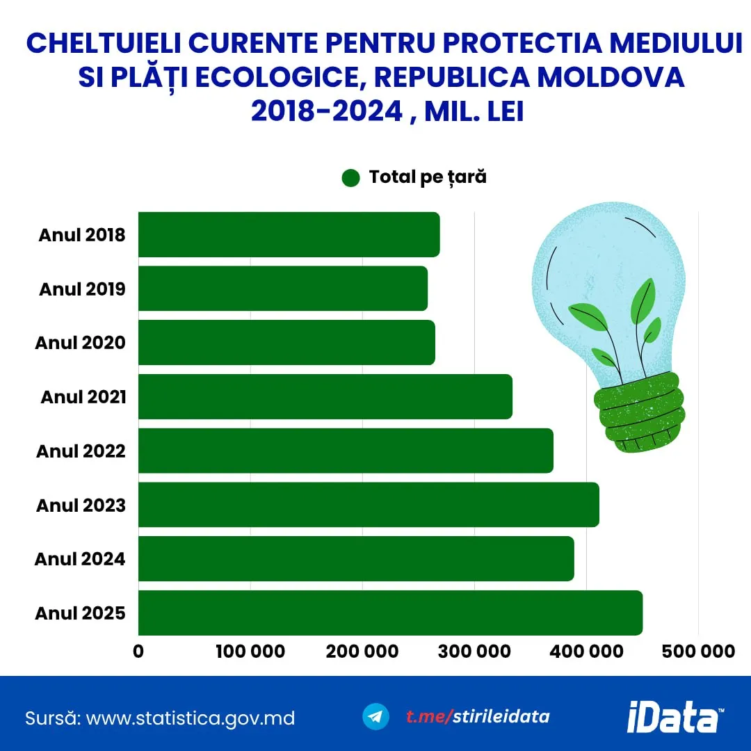Cheltuielile curente pentru protecția mediului și plățile ecologice în Republica Moldova au înregistrat o creștere constantă în ultimii ani.