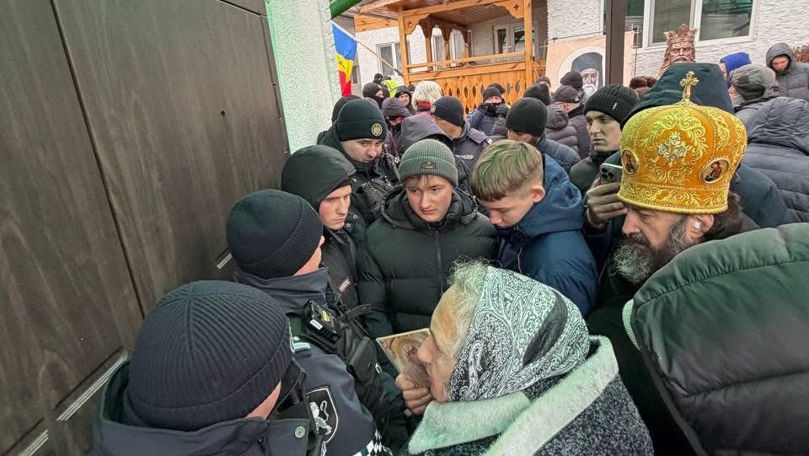 Noi tensiuni la biserica din Dereneu: Slujbă oficiată în fața lăcașului și Poliției