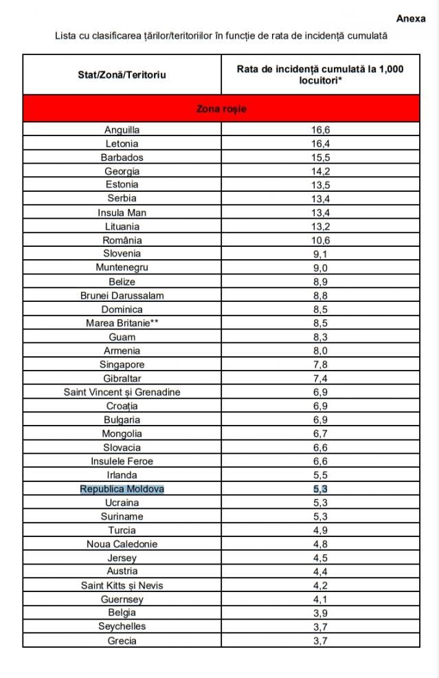 Totodată, Olanda și Federația Rusă au intrat în zona roșie ca urmare a creșterii incidenței cazurilor de COVID-19, transmite Știri.md cu referire la Deschide.md.