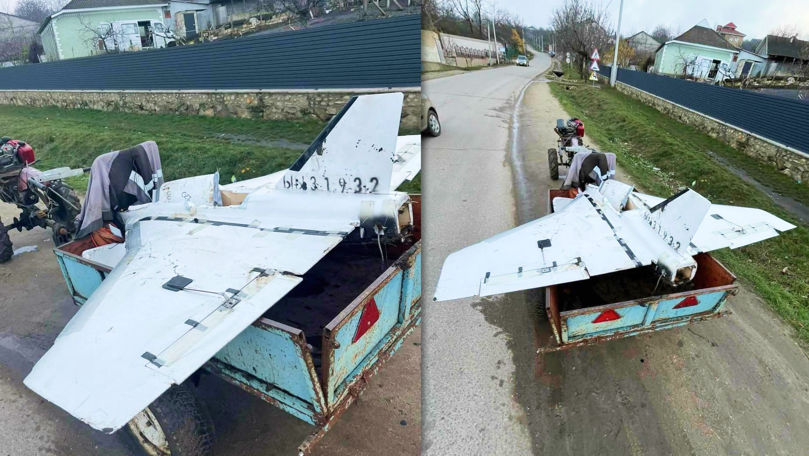 Pe rețelele sociale au apărut astăzi imagini cu o dronă transportată în remorca unui motocultor. Aparatul a fost găsit pe un câmp de un localnic din Pepeni, Sângerei.
