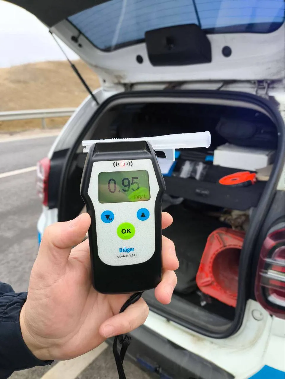 Testat alcoolscopic, rezultatul a arătat o concentrație de 0,95 mg/l alcool în aerul expirat, ceea ce indică o stare de ebrietate avansată.