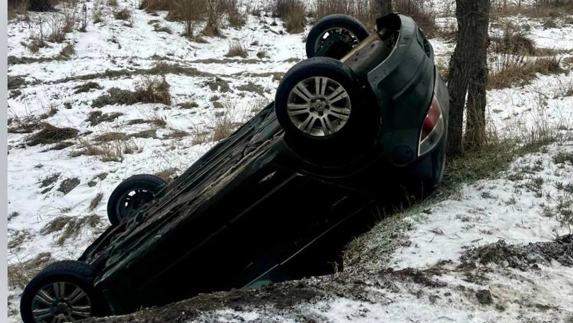 O mașină s-a răsturnat: Nu era echipată corespunzător sezonului rece