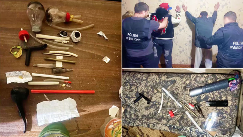 În baza unei autorizații, oamenii legii au efectuat percheziții la domiciliul suspectului. În interior au fost depistați alți doi bărbați, cu vârste de 25 și 30 de ani, care prezentau semne de consum de substanțe narcotice.
