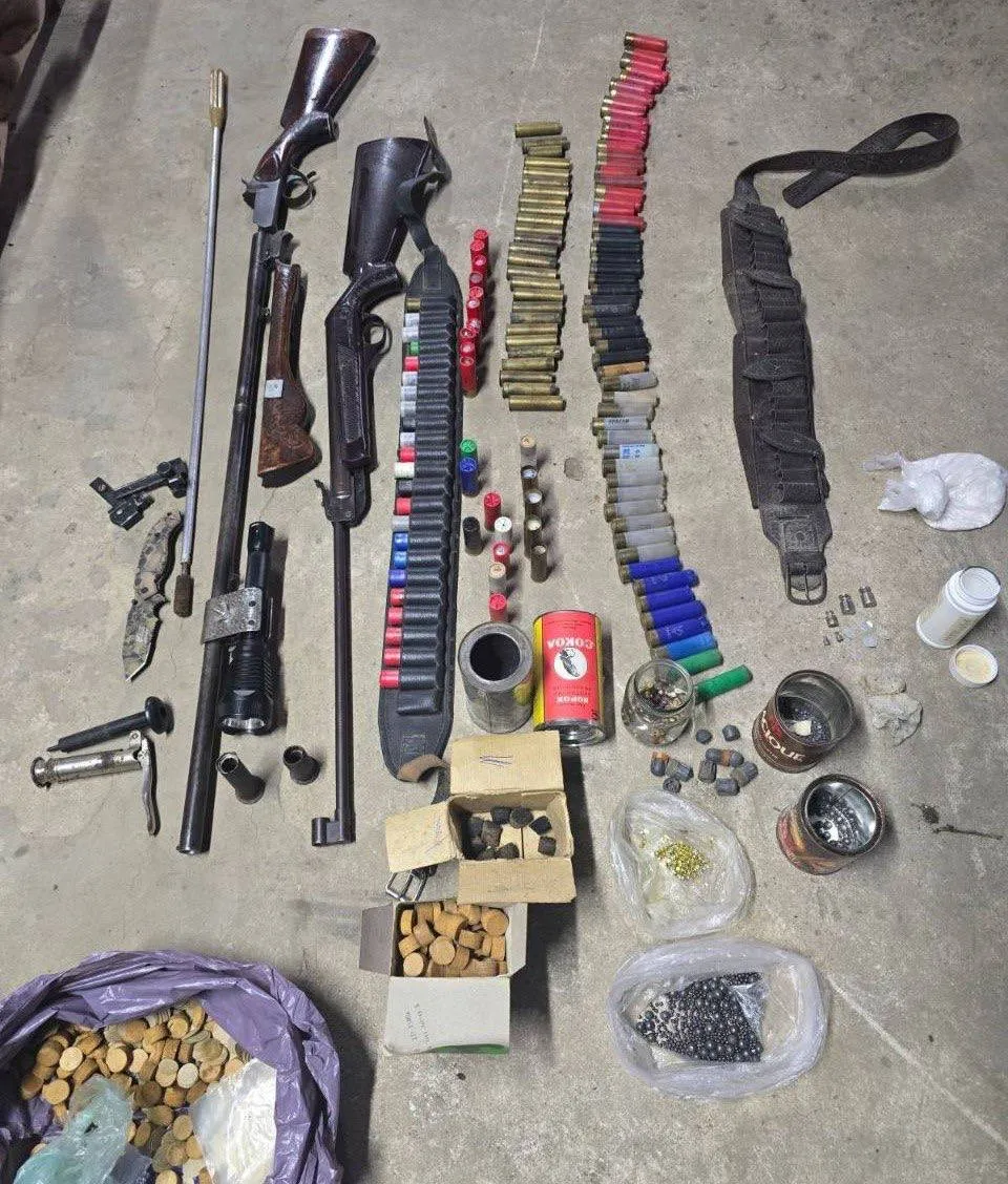 Foto: Poliția RMMai exact, este vorba despre două arme (pneumatică și cu țeavă lisă), cartușe, tuburi de cartuș, precum și materiale pentru confecționarea muniției, transmite Știri.md.