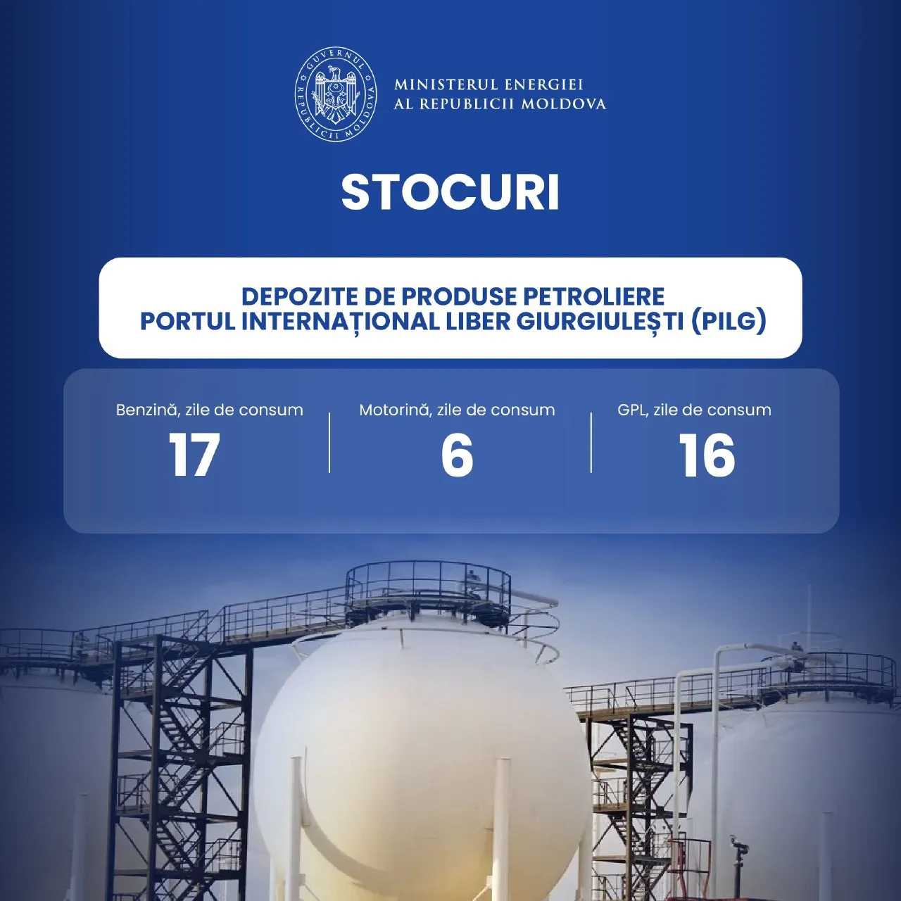 Stocurile constituie 17 zile de consum pentru benzină, 16 zile de consum pentru gaze petroliere lichefiate şi șase zile de consum pentru motorină.