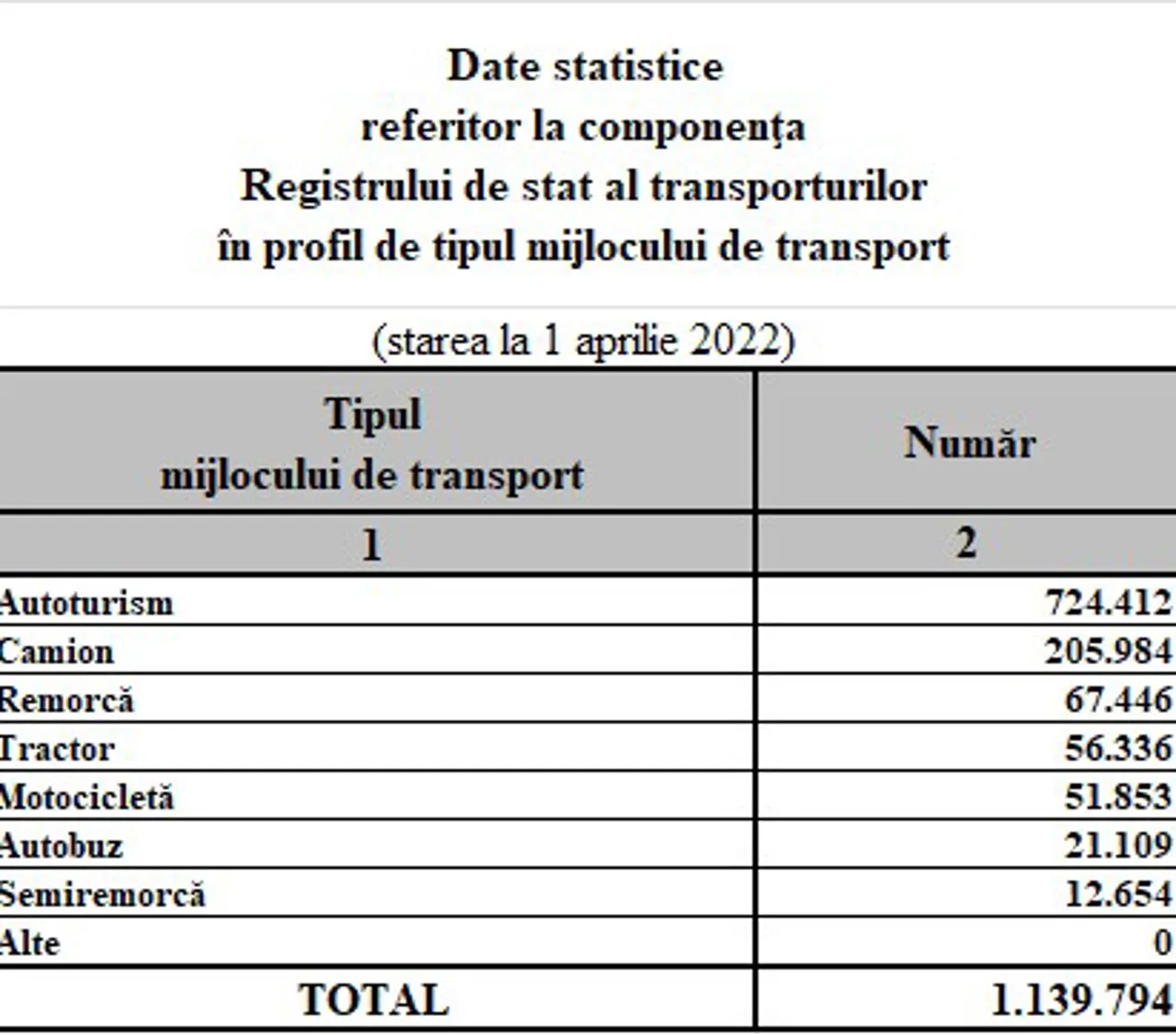 În prezent, în Republica Moldova sunt înregistrate și 236.501 camioane, precum și 68.674 de tractoare.