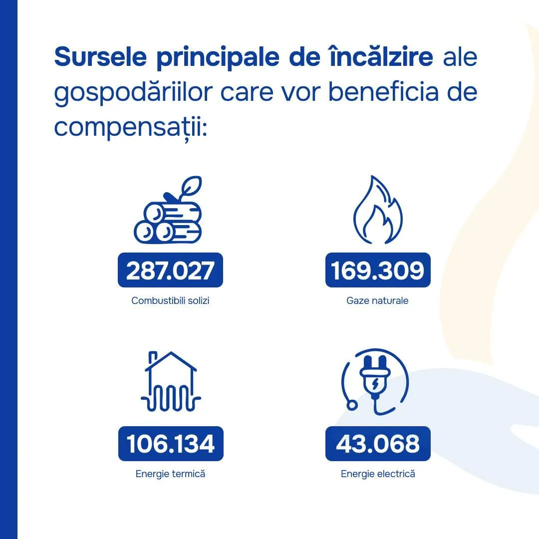 Mai mult de jumătate din numărul total de beneficiari (53%) vor primi valoarea maximă de compensații - 800 de lei pentru combustibili solizi și 1.000 de lei pentru alte surse de energie. Alți 23% vor beneficia de sume cuprinse între 500 și 1.000 de lei, iar restul vor primi compensația minimă de 500 de lei. Sumele vor fi acordate lunar, pe parcursul sezonului rece.