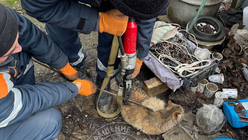 Într-un alt caz, la stația Novosavițka, raionul Slobozia, oamenii au auzit mieunatul disperat al unei pisici. Animalul de companie, încercând să scape de un câine, s-a împuns într-o armătură.