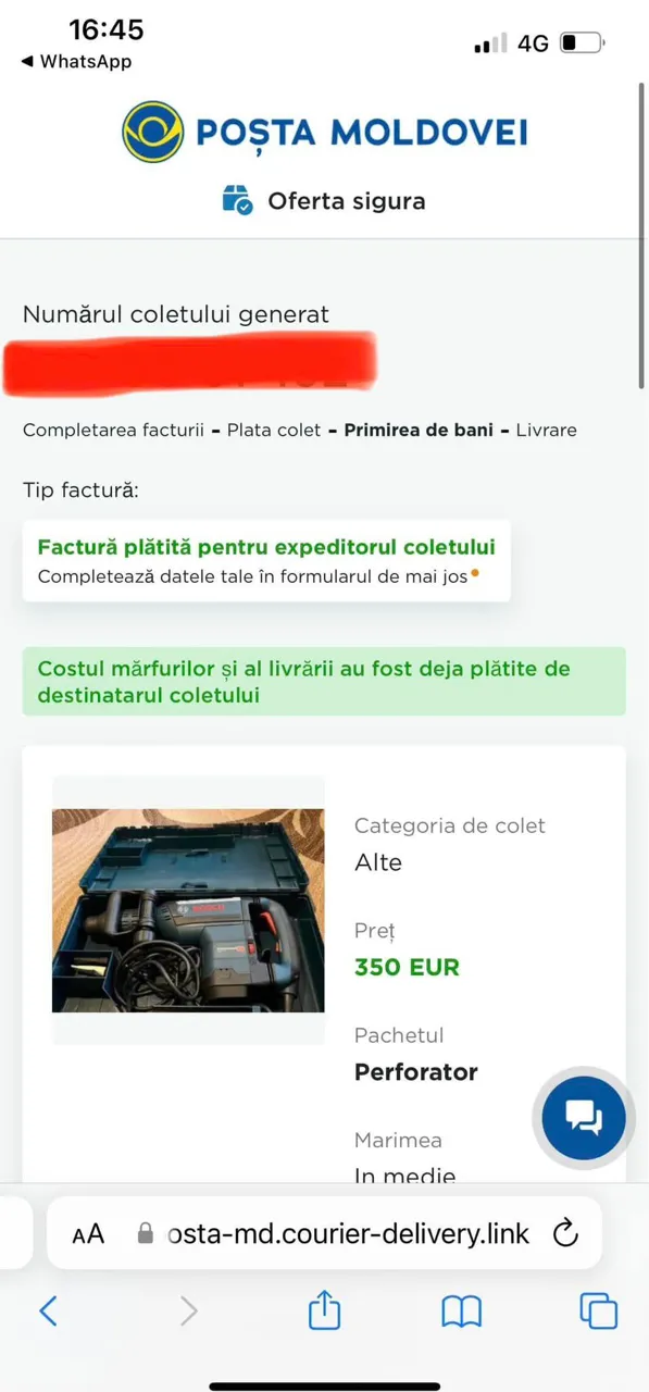 Pentru verificarea informației formați numărul: (022) 27 00 44 - „Suport Clienți" sau lăsați-ne un mesaj - informații@posta.md”, se arată în mesajul de avertizare.