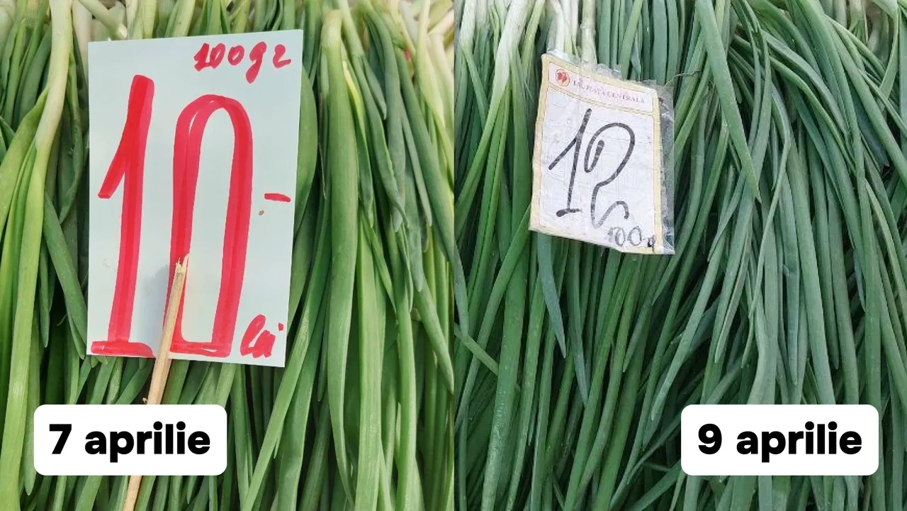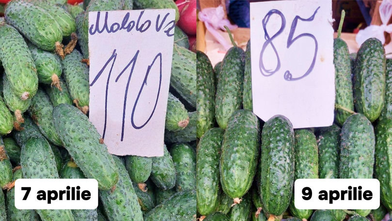 Cozile de ceapă verde s-au scumpit ușor, de la 10 la 12 lei pentru 100 de grame, iar căpșunile au avut una dintre cele mai mari creșteri: o caserolă costă acum 65 de lei, față de 45 de lei cu două zile înainte. Comparativ cu 7 aprilie, când castraveții moldovenești puteau fi procurați cu 85 lei/kg, pe 9 aprilie aceștia se vând cu 110 lei/kg.