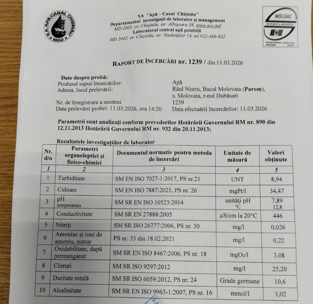 Rezultatele analizelor de laborator efectuate asupra probelor de apă prelevate din două puncte diferite ale râului Nistru — de la hidrocentrala Dubăsari și din zona Molovata — arată că apa nu este contaminată în această zonă. Anunțul a fost făcut de primarul general al municipiului Chișinău, Ion Ceban.