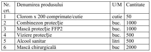 Este vorba de mii de măşti şi îmbrăcăminte de protecţie, sute de viziere şi jumătate de tonă de alcool sanitar.