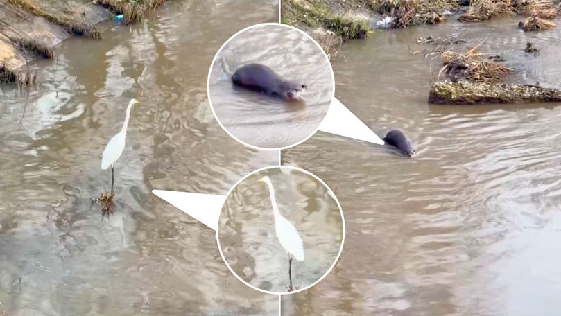 „Astăzi am avut o surpriză rară chiar în oraș: o vidră europeană și o egretă mare”, a scris internautul în descrierea filmulețului.