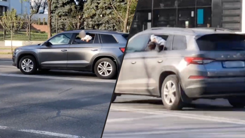 Situație periculoasă, surprinsă în trafic: Un copil, văzut aplecat peste geamul unei mașini în mers
