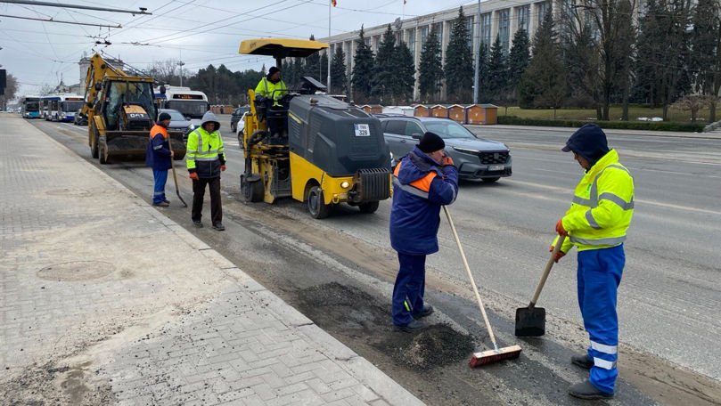 Primăria Chișinău anunță că, la această oră, pe străzile Capitalei sunt mobilizați sute de muncitori pentru executarea lucrărilor de frezare și plombare a porțiunilor de carosabil deteriorate.