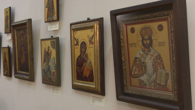 Foto: moldova1.mdDin cele 24 de lucrări expuse, 22 aparțin regretatului iconar Constantin Musteață, iar două sunt semnate de fiul său, artistul Dumitru Musteață, care duce mai departe tradiția familiei, transmite Știri.md cu referire la moldova1.md.