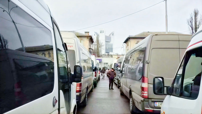 Transportatorii de pasageri s-au adunat astăzi, 12 februarie, pentru a protesta în scuarul din fața Gării, unde se află sediul Agenției Naționale Transport Auto (ANTA).
