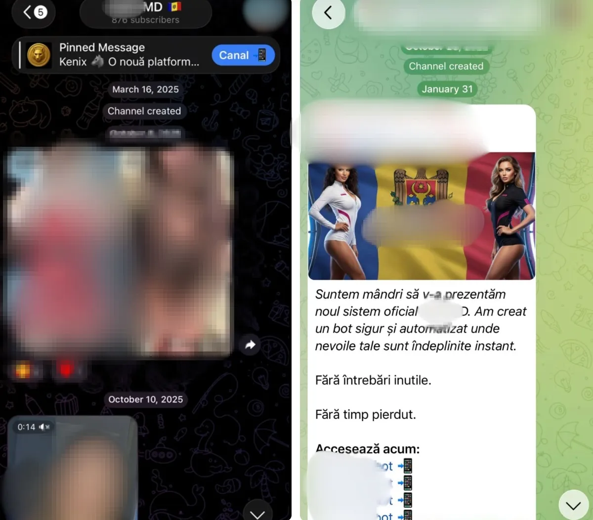 Un nou canal de telegram, promovat de mai multe conturi de TikTok, vinde imagini și video intime cu zeci de fete, despre care administratorul afirmă că ar fi din R. Moldova.