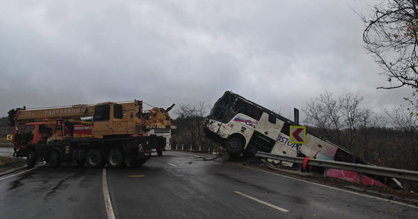 Foto: Facebook/Ruslan FainaPotrivit surselor pulsmedia.md, în accident a fost implicat un autocar de marca Setra, cu opt persoane la bord, dar și care tracta o remorcă. Șoferul autocarului, un bărbat în vârstă de 55 de ani, ar fi pierdut controlul asupra volanului într-o curbă, iar autocarul a derapat de pe traseu și s-a răsturnat, transmite Știri.md.
