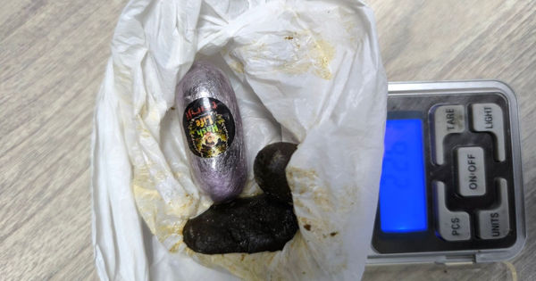 În cadrul verificărilor, printre bunurile personale ale pasagerului, oamenii legii au depistat mai multe pachețele cu diverse tipuri de substanțe stupefiante și psihotrope, presupuse a fi marijuana, cocaină, MDMA, precum și capsule cu substanțe de origine necunoscută. Cantitatea totală a fost estimată la 38,42 grame. Totodată, a fost găsit și un dispozitiv de culoare albastră, utilizat pentru consumul acestor substanțe.