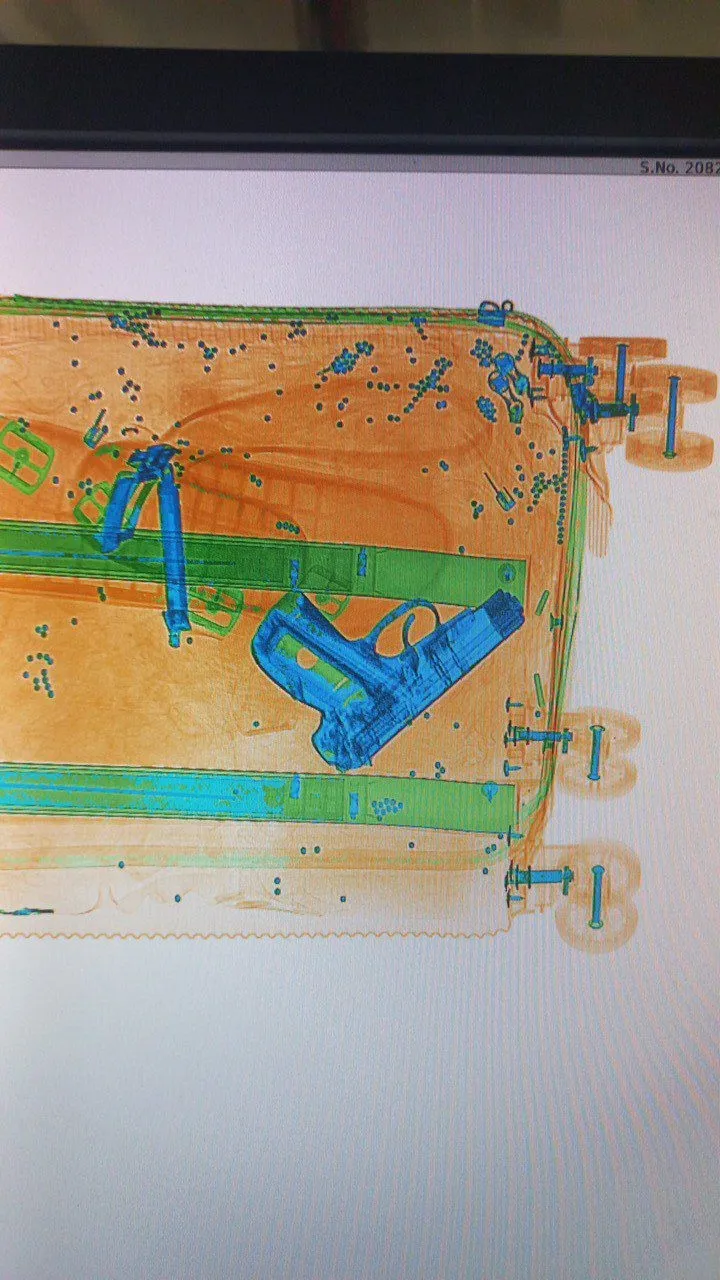 Un pistol pneumatic cu bile metalice, găsite în valiza unui israelian