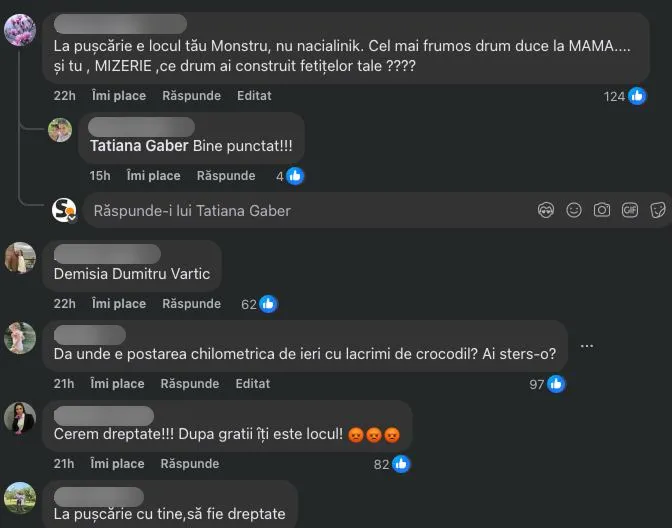 „La pușcărie e locul tău, monstrule, nu la conducere. Cel mai frumos drum duce la mama... și tu, mizerie, ce drum ai construit fetițelor tale?”, a scris un utilizator.