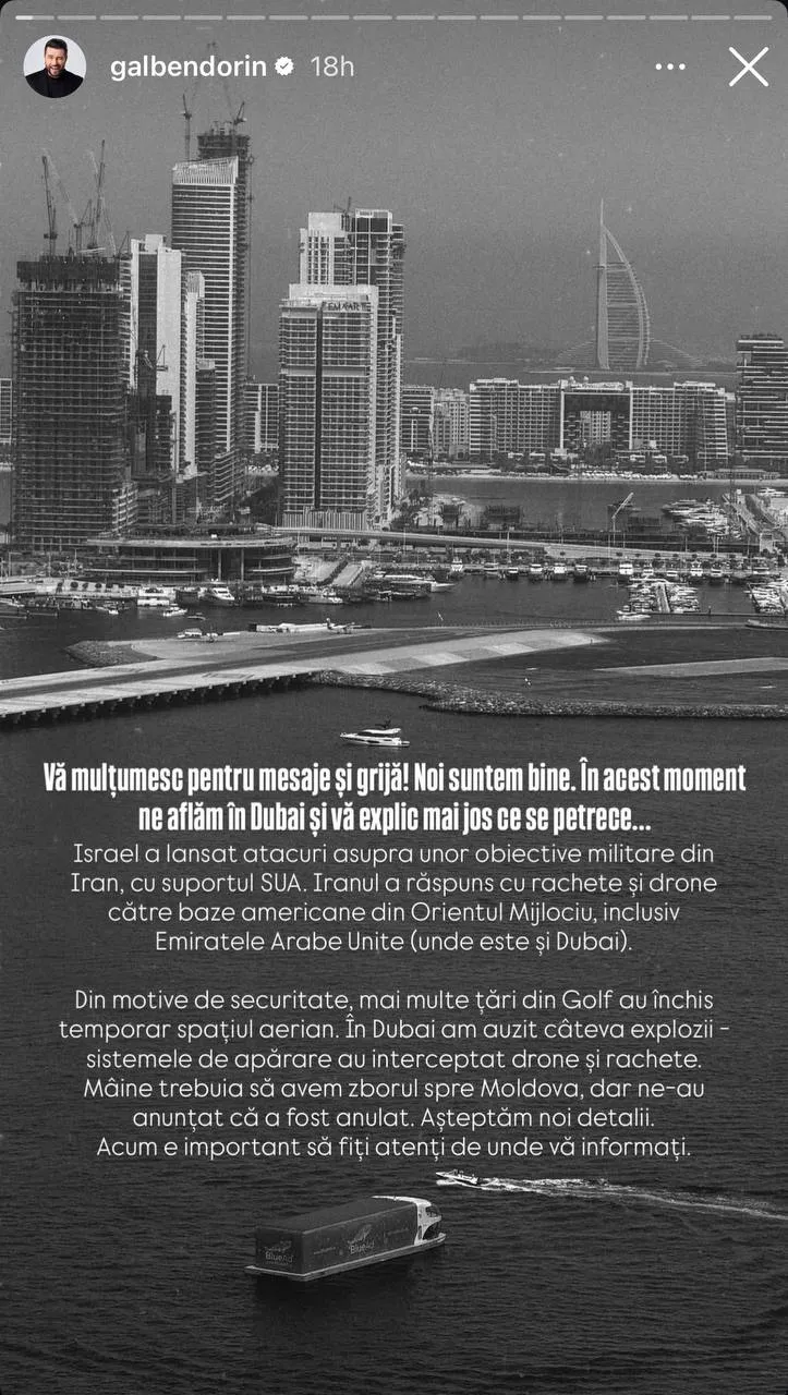 Printre aceștia se află și Dorin Galben și Violeta Scrișu, care urmau să revină acasă din Dubai, însă planurile lor au fost date peste cap din cauza situației din regiune.