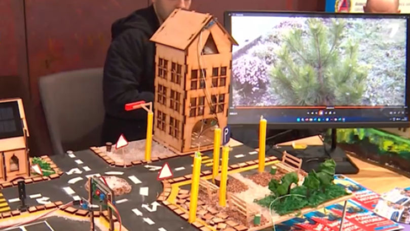 Cătălin Manea, colegiul Politehnic, Bălți: „Avem un proiect care se numește ecologia verde, unde sunt prezentate mai multe cărți ecologice cum ar fi turbinele eoliene și panouri solare. Avem un stup artificial care monitorizează temperatura, umiditatea și producția zilnică per stup.”